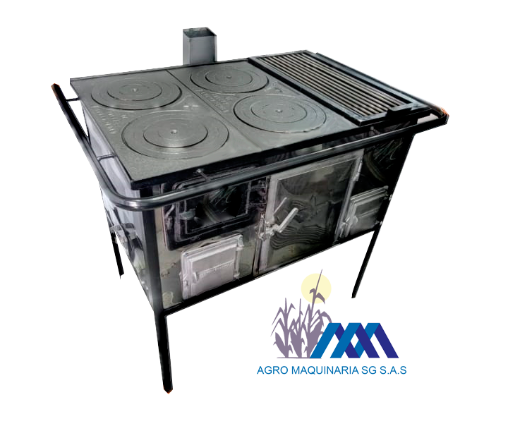 2 planchas. 4 fogones y puerta leñera en hierro.